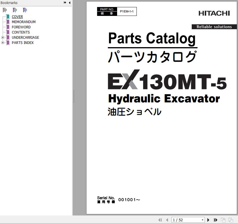 Hitachi EX130MT-5 Parts Catalog P1EM-1-1