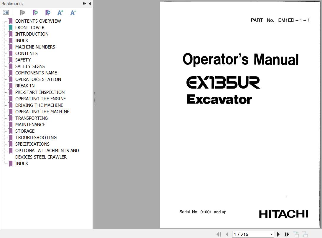 Hitachi EX135UR Operator's Manual EM1ED-1-1