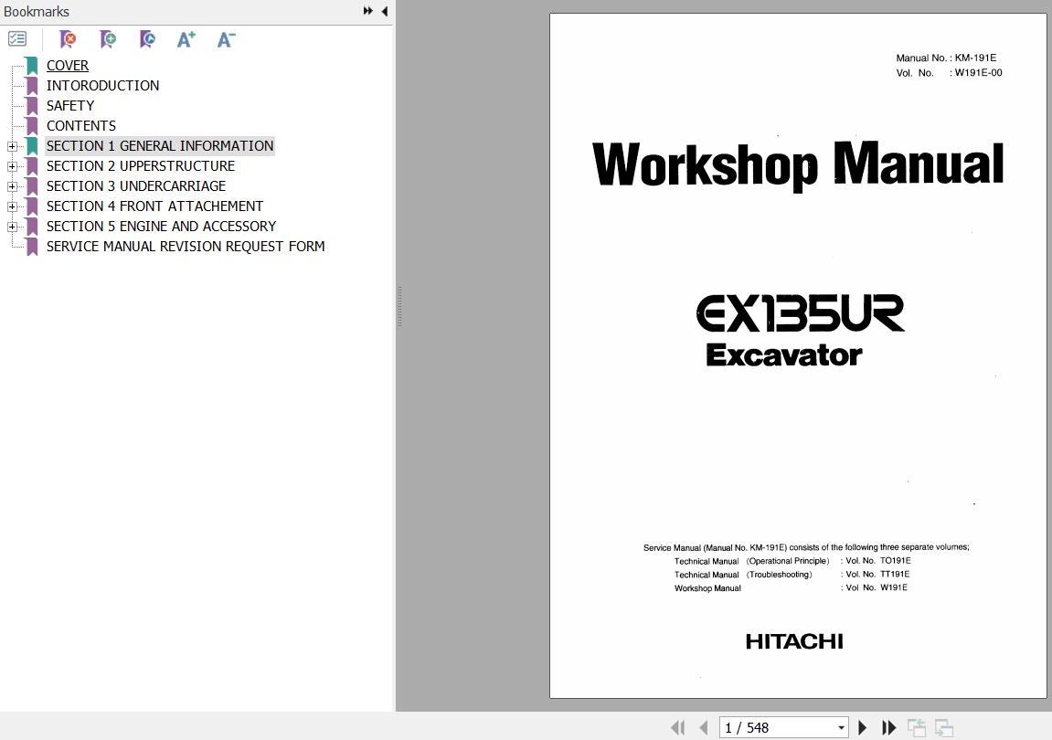 The Bookmarks of Hitachi EX135UR Workshop Manual: