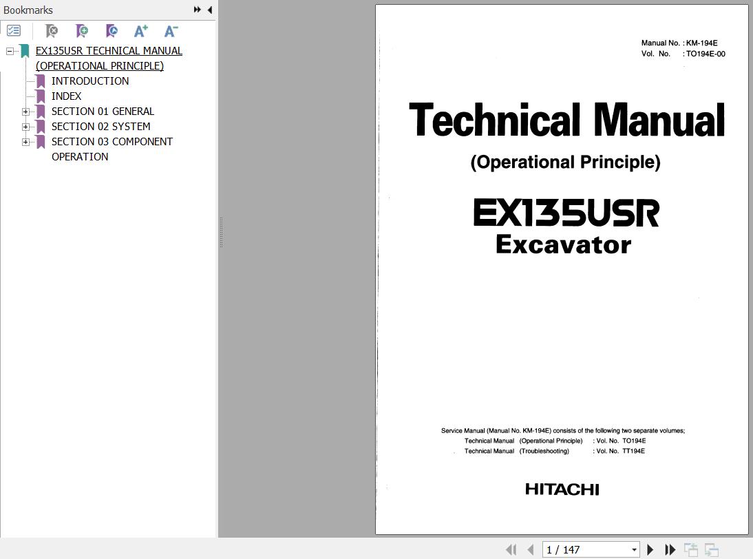 Hitachi EX135URS Technical Manual Operational Principle TO194E-00
