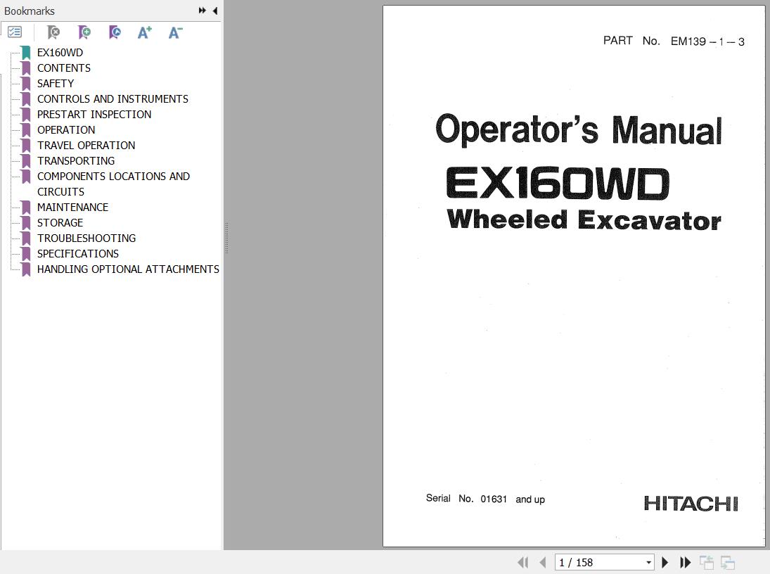 Hitachi EX160WD Operator's Manual EM139-1-3