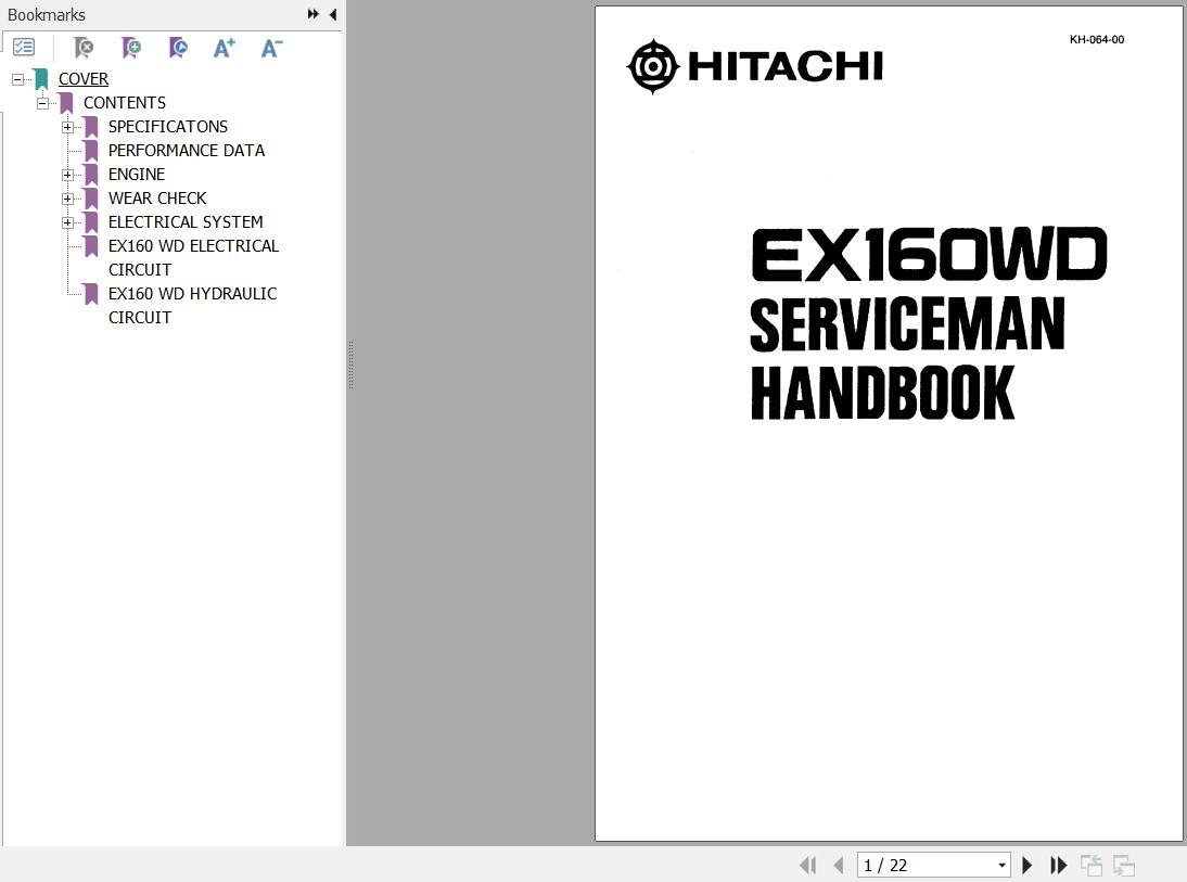 The Bookmarks of Hitachi EX160WD Serviceman Handbook: