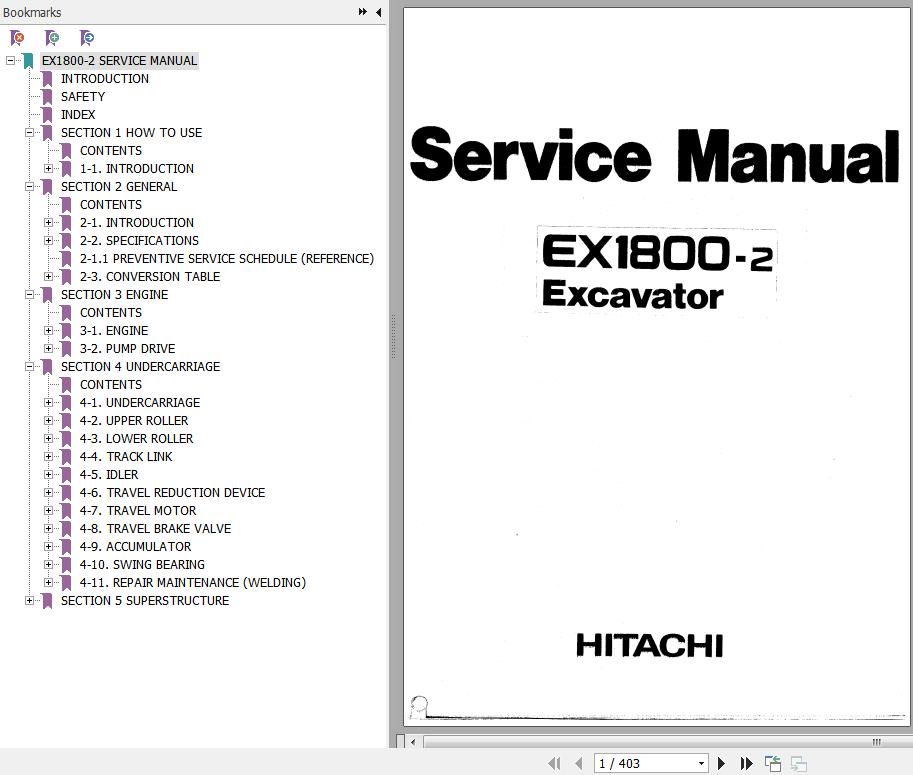 The Bookmarks of Hitachi EX1800-2 Hydraulic Excavator Service Manual KM114E-01: