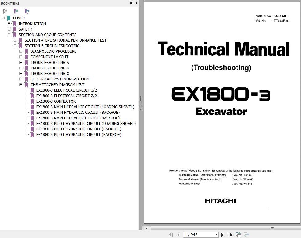 The Bookmarks of Hitachi EX1800-3 Hydraulic Excavator Technical Manual Troubleshooting: