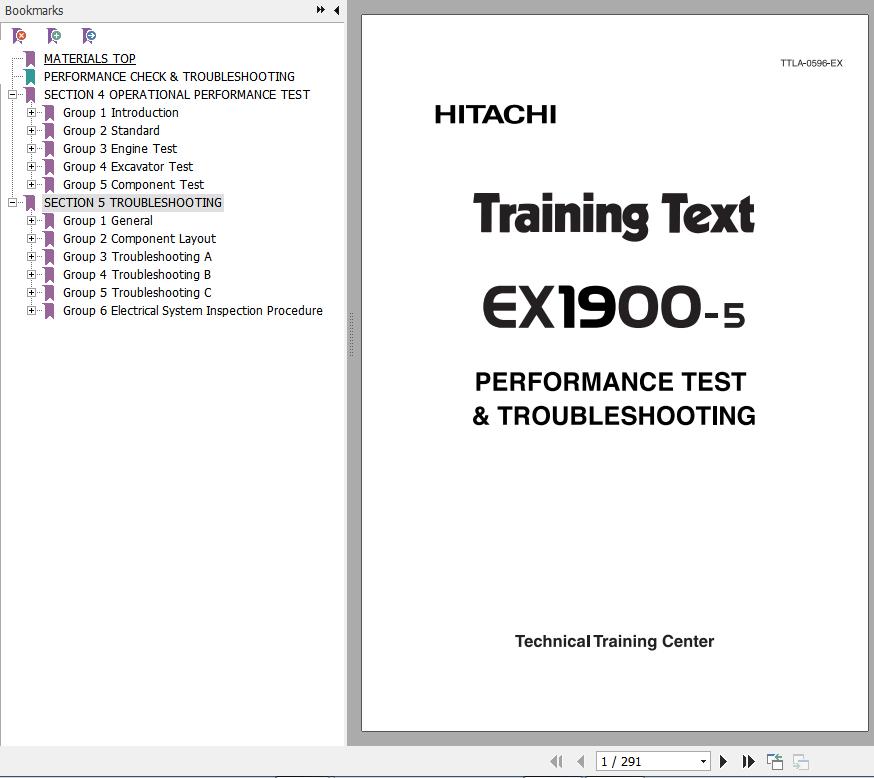 Hitachi EX1900-5 Training Text Performent Test & Troubleshooting TTLA-0596-EX