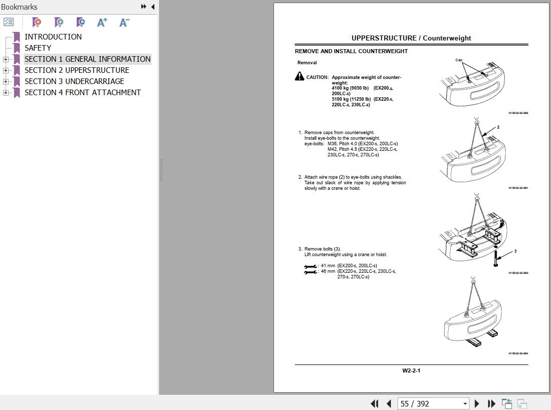 Hitachi EX200-5 200LC-5 220-5 220LC-5 230LC-5 270-5 270LC-5 Workshop Manual W-157E-02 first part 392 Pages