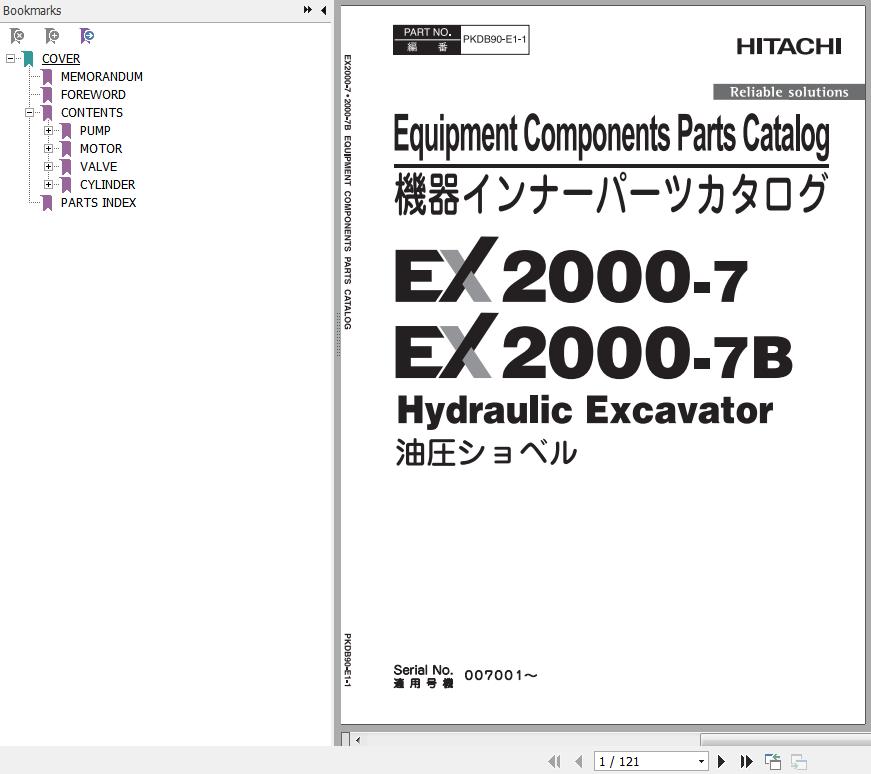 Hitachi EX2000-7 EX2000-7B Equipment Components Parts Catalog PKDB90-E1-1
