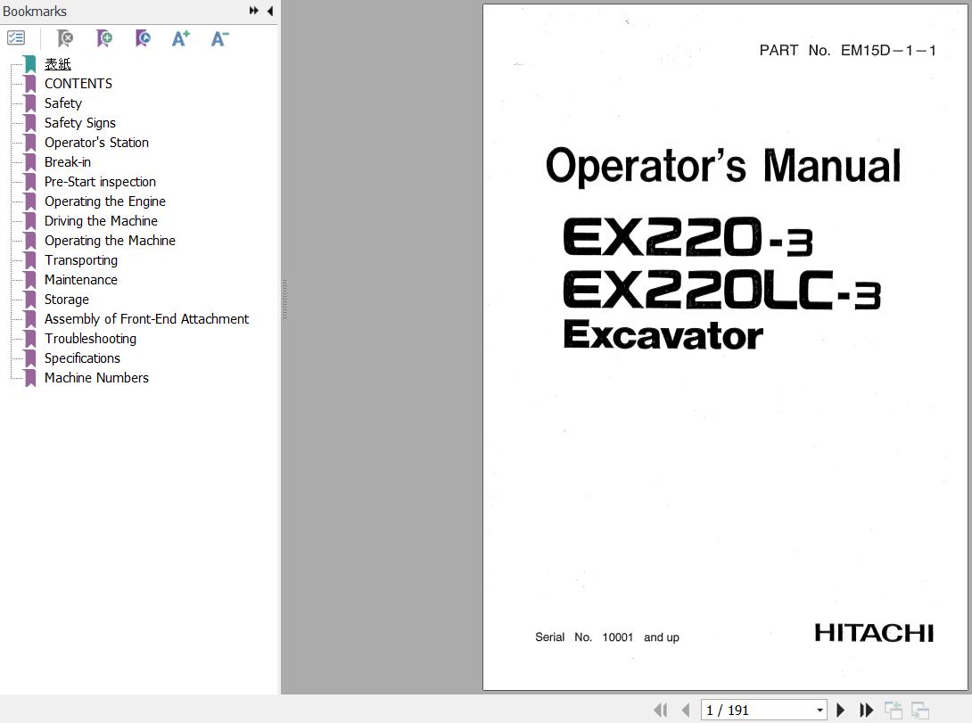 Hitachi EX220-3 EX220LC-3 Operator's Manual EM15D-1-1