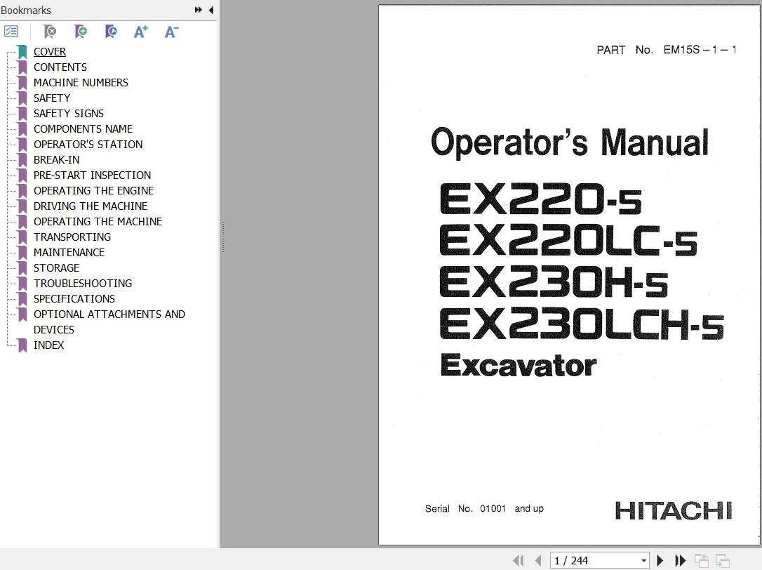 Hitachi EX220-5 220LC-5 230H-5 230LCH-5 Operator's Manual EM15S-1-1