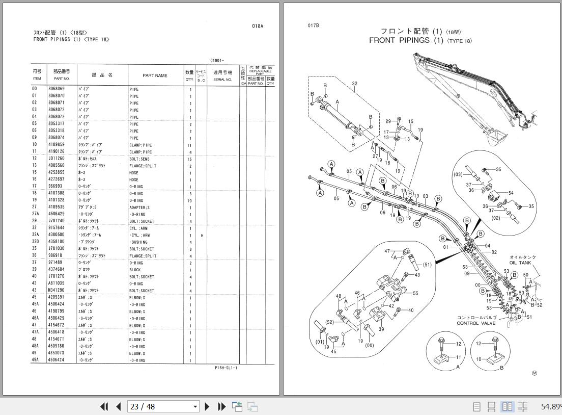 Hitachi EX220LC-5 EX230LCH-5 River Maintenance Front Type 18 Parts Catalog