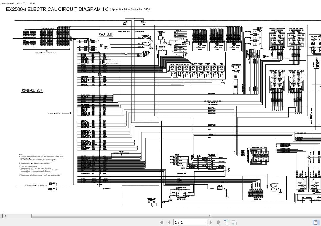 Hitachi EX2500-5 Electrical Circuit Diagram 1-3 TT141-E-01(Serial No. 523) 1 Pages