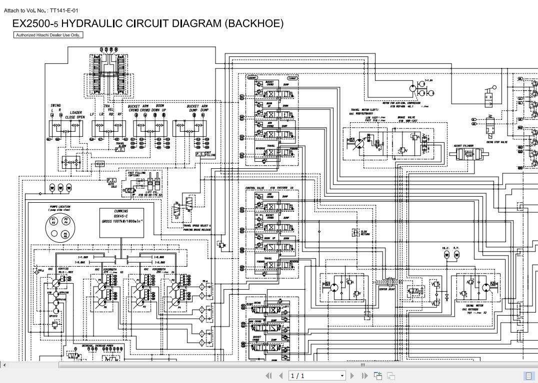 Hitachi EX2500-5 Hydraulic Circuit Diagram Backhoe TT141-E-01 1 Pages