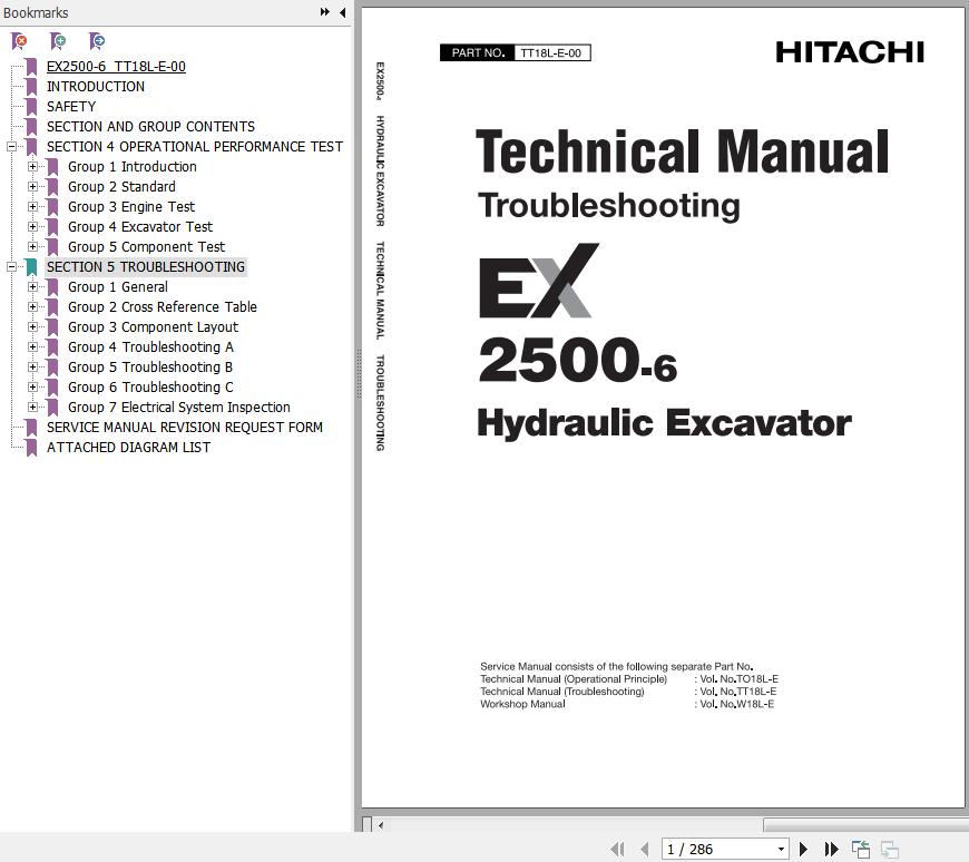 Hitachi EX2500-6 Technical Manual Troubleshooting TT18L-E-00(20200331) 286 Pages