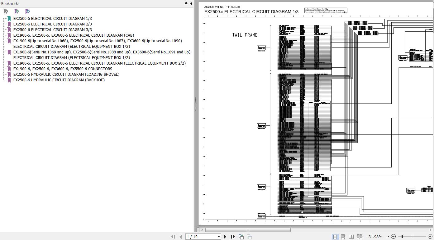 Hitachi EX2500-6 Electrical & Hydraulic Ciruit DiagramTT18L-E-00(20090703) 10 Pages