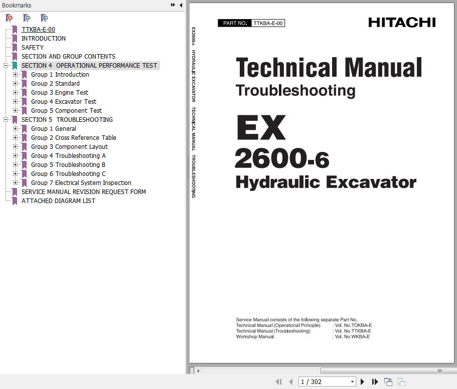 The Bookmarks of Hitachi EX2600-6 Hydraulic Excavator Technical Manual Troubleshooting: