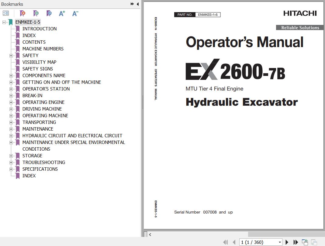 The Bookmarks of Hitachi EX2600-7B MTU Tier 4 Final Operator’s Manual: