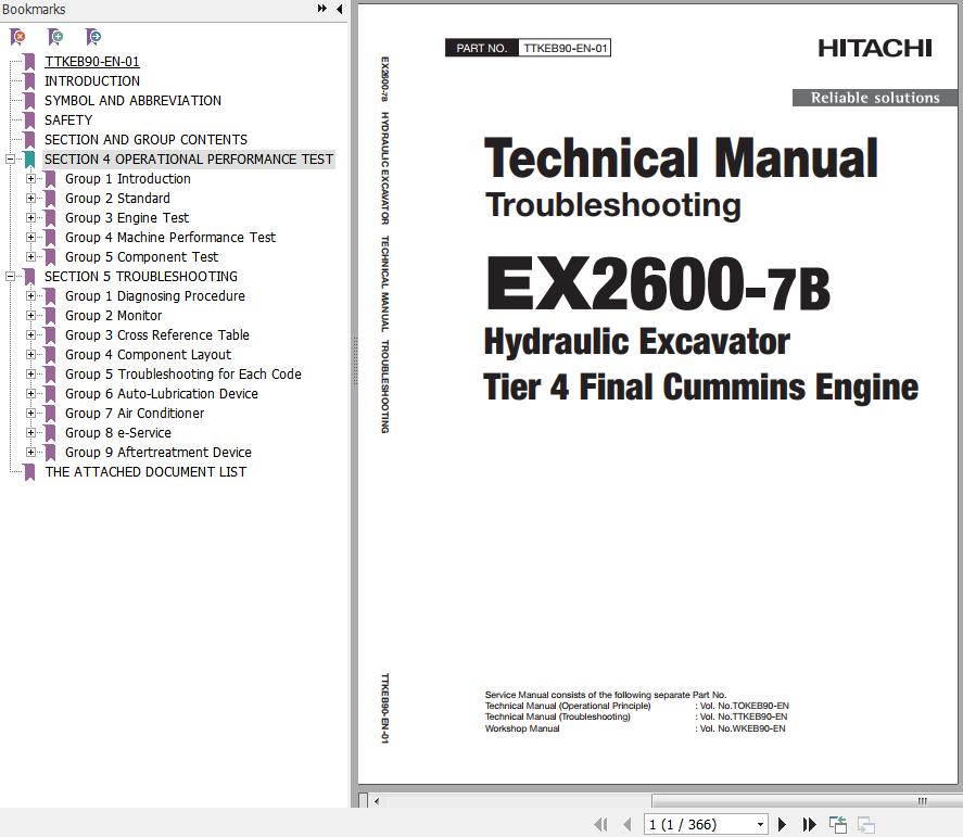 Hitachi EX2600-7B T4F Cummins Engine Technical Manual Troubleshooting TTKEB90-EN-01