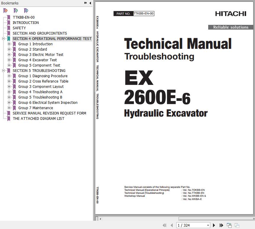The Bookmarks of Hitachi EX2600E-6 Hydraulic Excavator Technical Manual Troubleshooting: