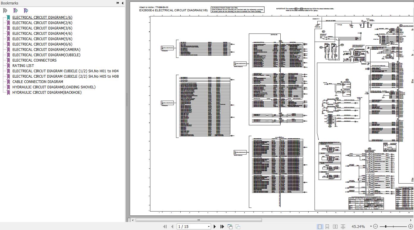 Hitachi EX2600E-6 Electrical & Hydraulic Circuit Diagram TTKBB-EN-00(20140411) 15 Pages