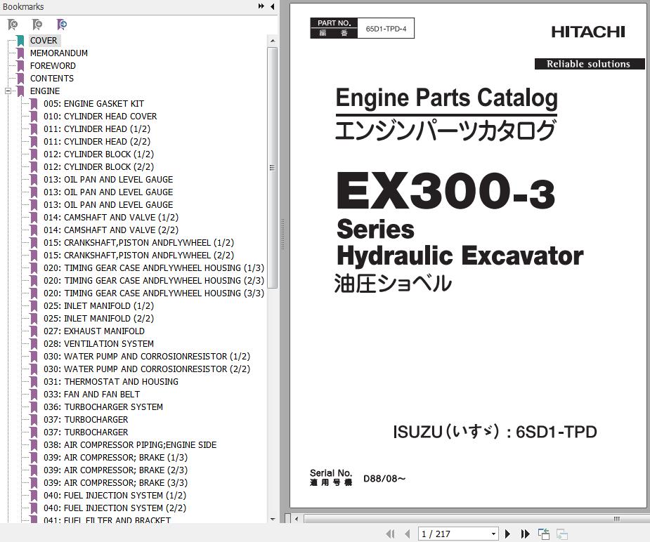 Hitachi EX300-3 Series Isuzu Engine Parts Catalog 6SD1-TPD-4