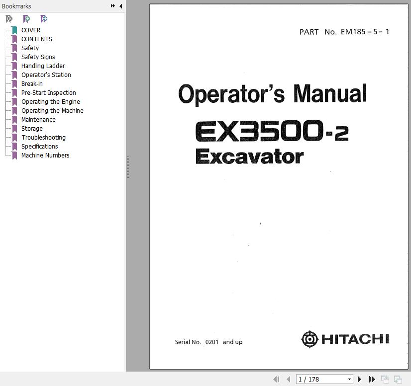 Hitachi EX3500-2 Operator's Manual EM185-5-1 178 Pages