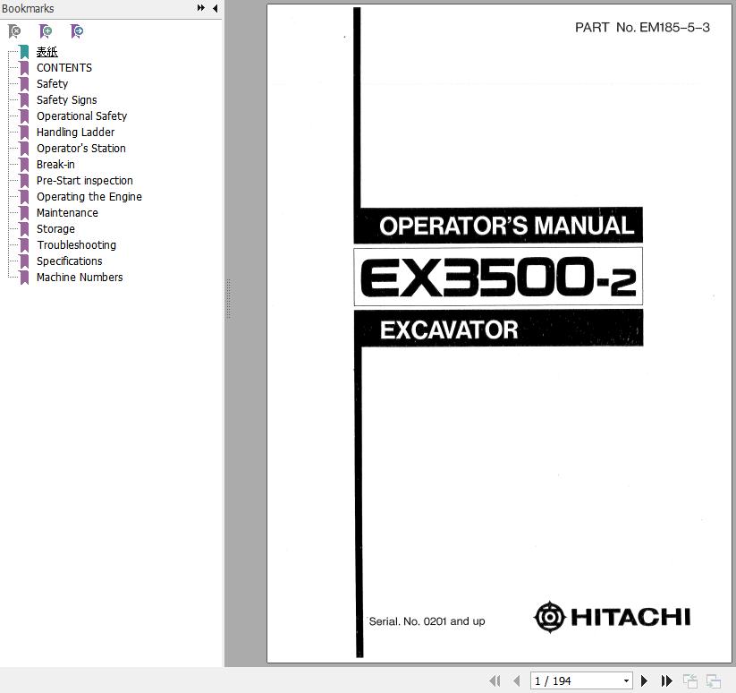 Hitachi EX3500-2 Operator's Manual EM185-5-3 194 Pages