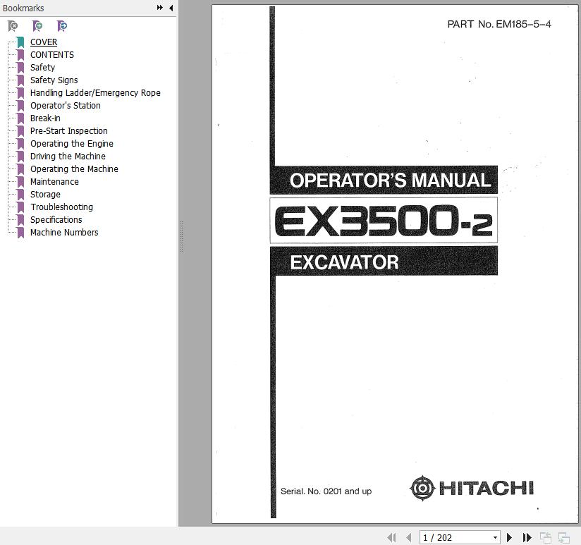 Hitachi EX3500-2 Operator's Manual EM185-5-4 202 Pages