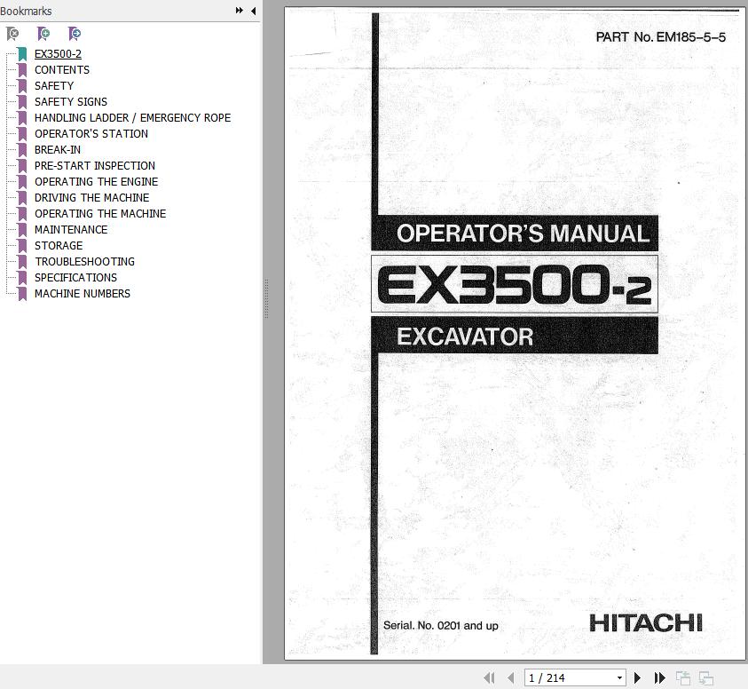 Hitachi EX3500-2 Operator's Manual EM185-5-5 214 Pages