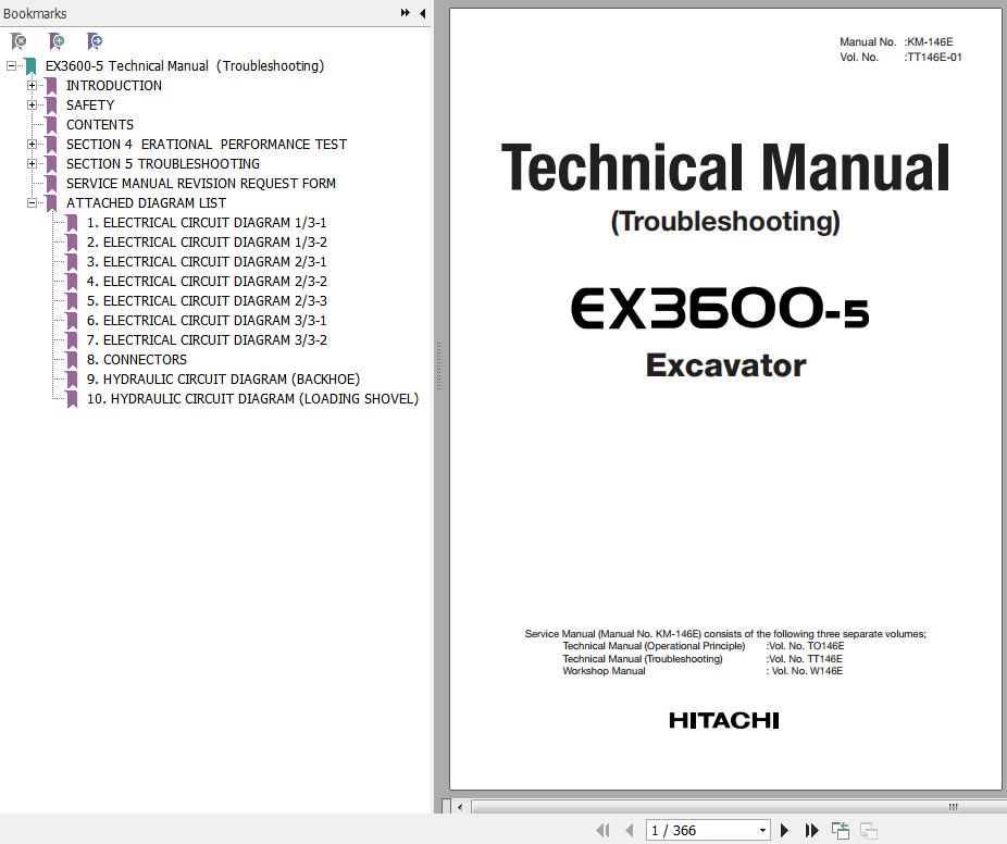 Hitachi EX3600-5 Technical Manual Troubleshooting TT146E-01 366 Pages