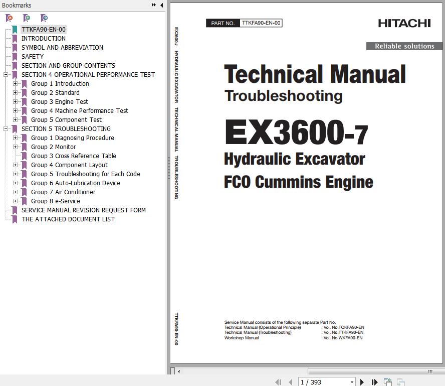 Hitachi EX3600-7 FCO Cummins Technical Manual Troubleshooting TTKFA90-EN-00(20210518) 393 Pages