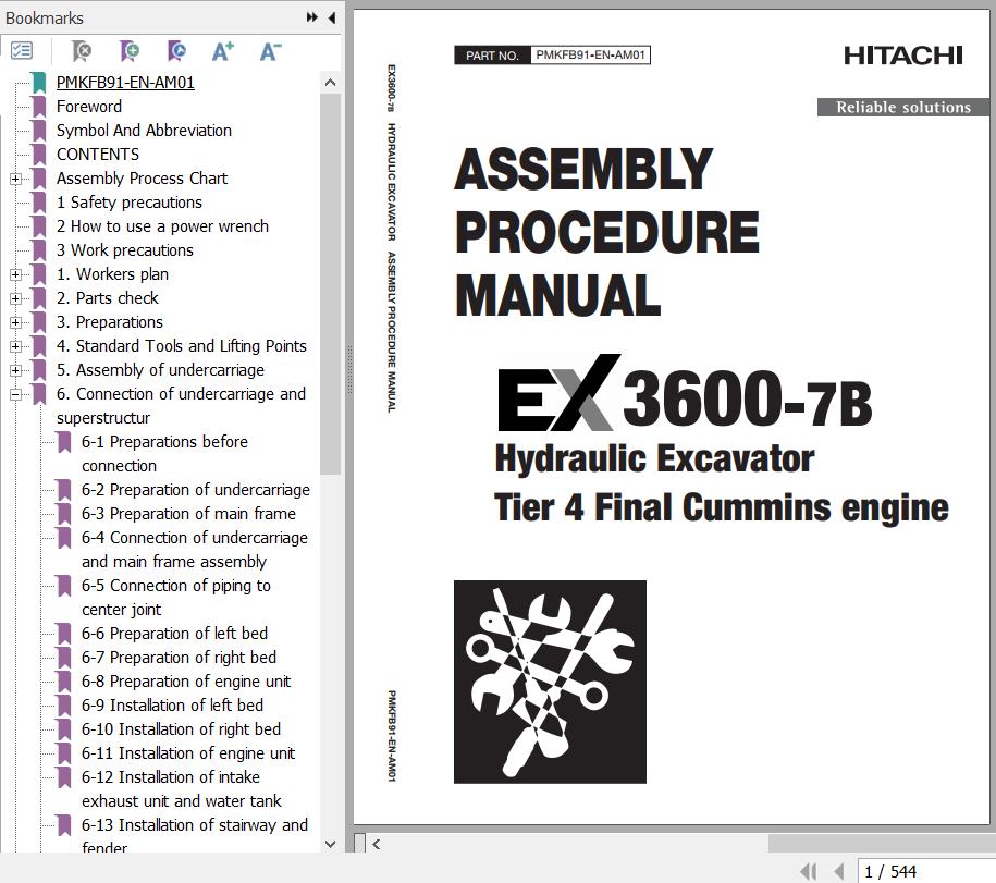 Hitachi EX3600-7B Cummins T4F Assembly Procedure Manual PMKFB91-EN-AM01(20230725) 544 Pages