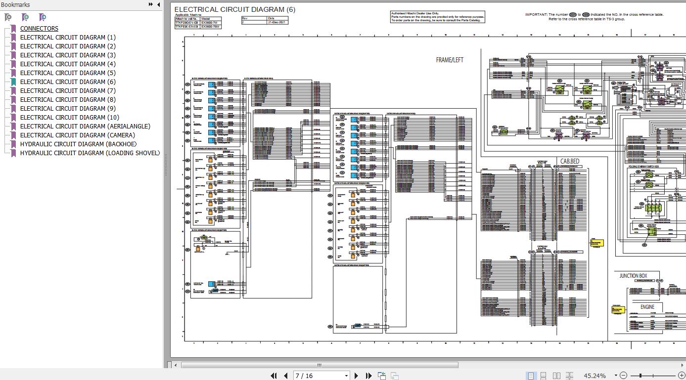 Hitachi EX3600-7B Electrical & Hydraulic Circuit Diagram TTKFE90-EN-00 16 Pages
