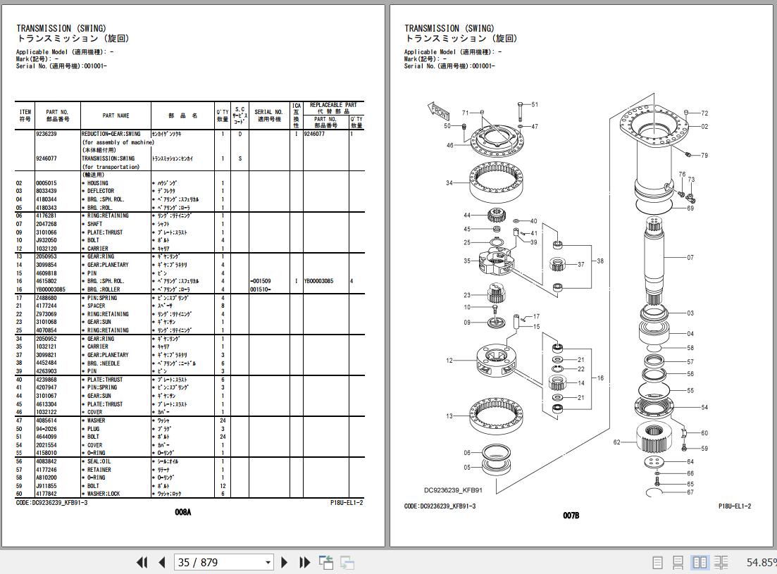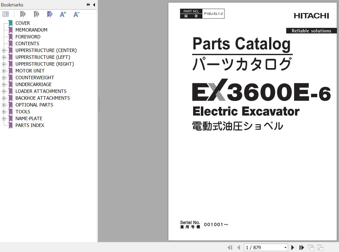 Hitachi EX3600E-6 Parts Catalog P18U-EL1-2