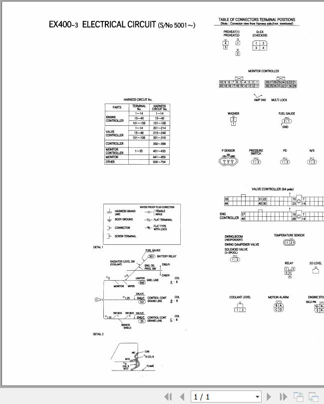 Hitachi EX400-3 Connectors T111E-00 1 Page