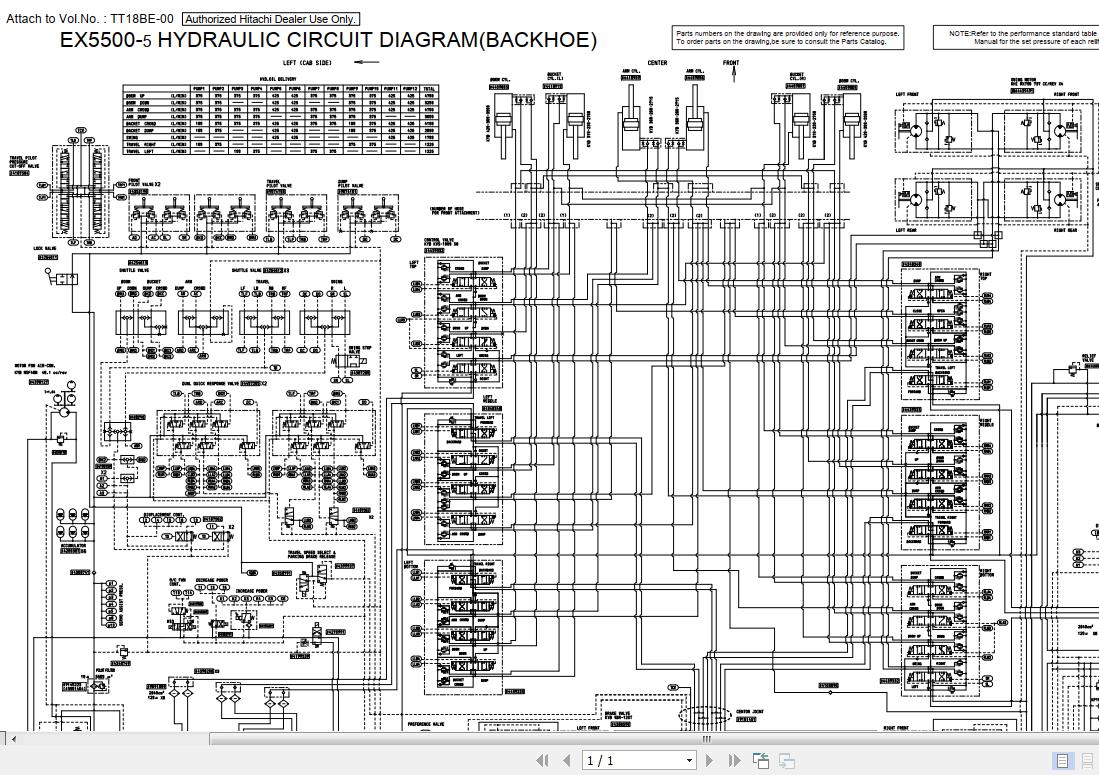 Hitachi EX5500-5 Hydraulic Circuit Diagram Backhoe TT18BE-00 1 Pages