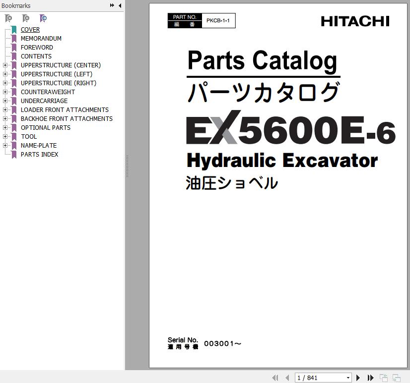 Hitachi EX5600E-6 Parts Catalog PKCB-1-1 EN JP 841 Pages