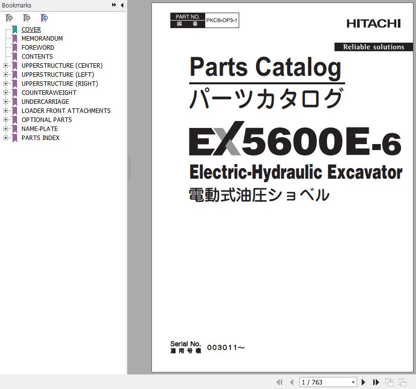 Hitachi EX5600E-6 Parts Catalog PKCB-OP3-1 EN JP 763 Pages
