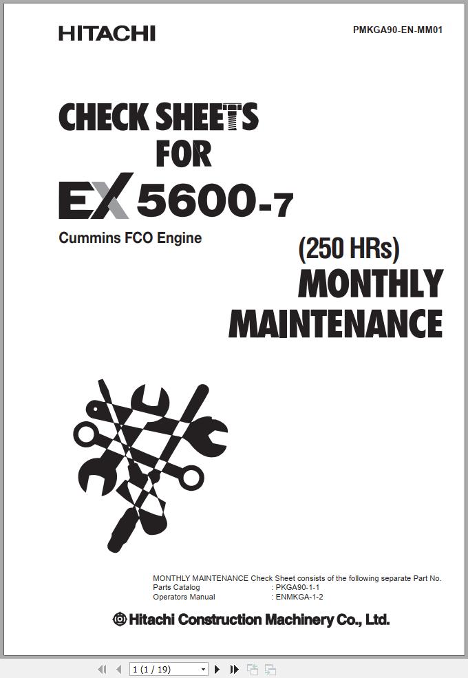 Hitachi EX5600-7 Cummins FCO Monthly Maintenance Check Sheets
