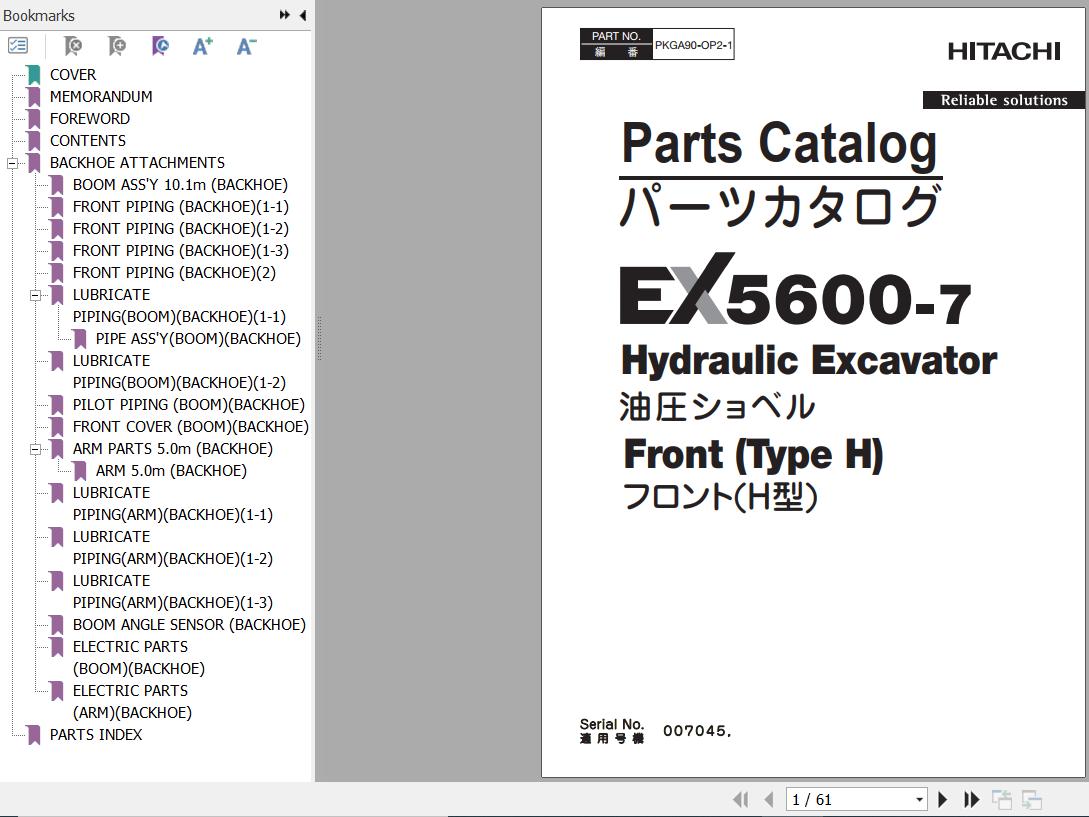 Hitachi EX5600-7 Front Type H Parts Catalog PKGA90-OP2-1