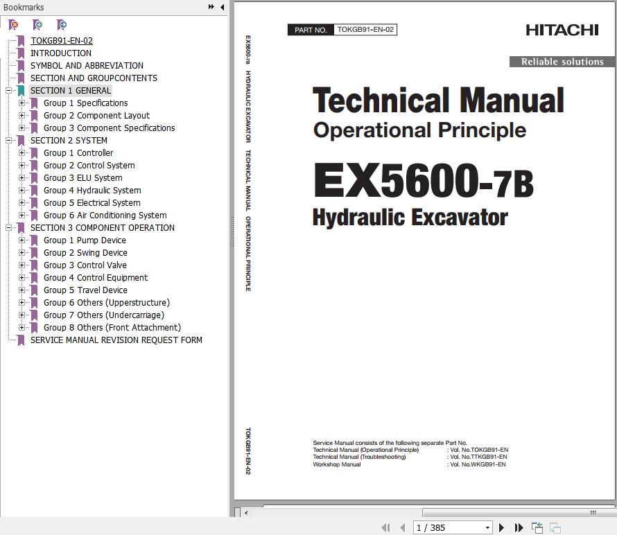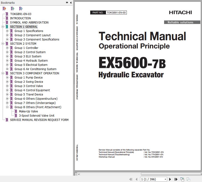Hitachi EX5600-7B Technical Manual Operational Principle TOKGB91-EN-03 396 Pages