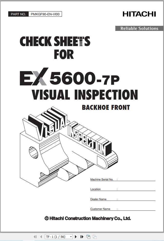Hitachi EX5600-7P Cummins FCO Visual Inspection Check Sheets