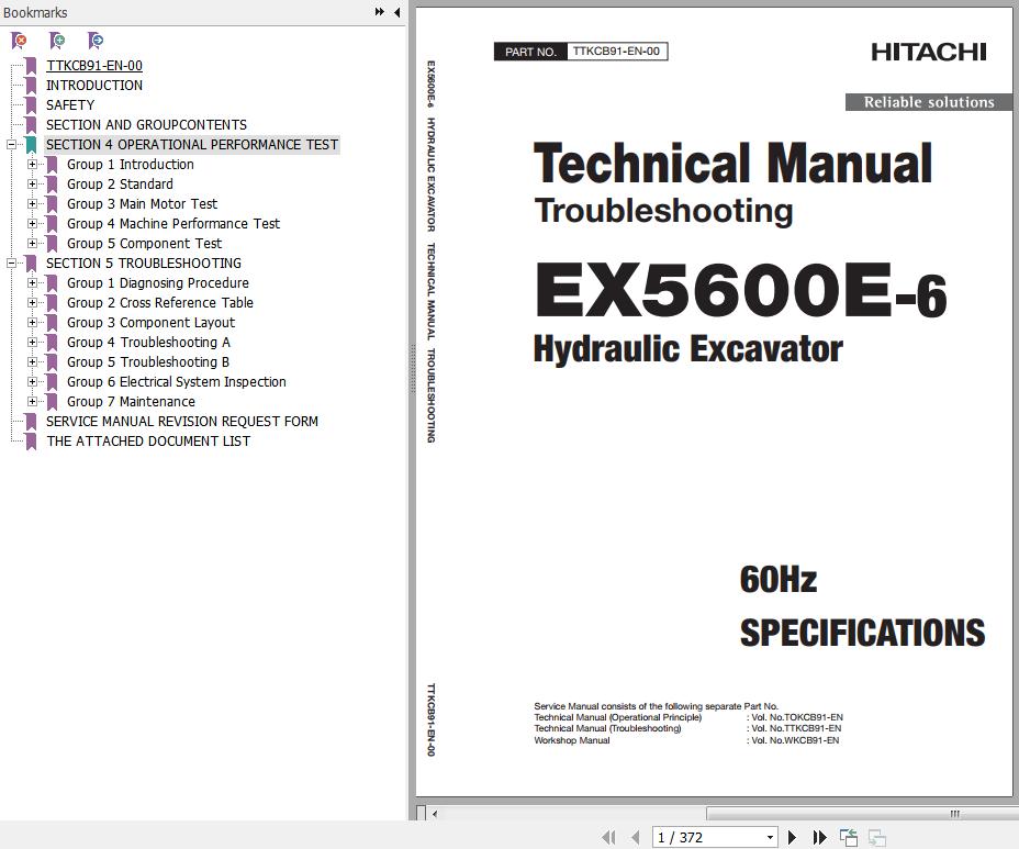 Hitachi EX5600E-6 60HZ Technical Manual Troubleshooting TTKCB91-EN-00(20200331) 372 Pages