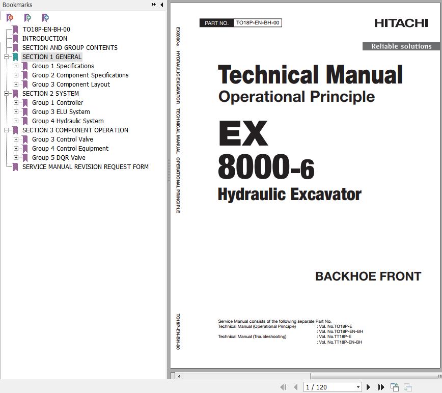 Hitachi EX8000-6 Backhoe Front Technical Manual Operational Principle TO18P-EN-BH-00