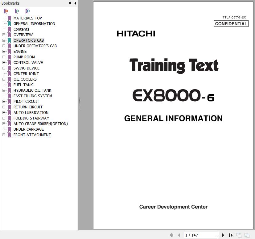 The Bookmarks of Hitachi EX8000-6 Hydraulic Excavator Training Text General Information: