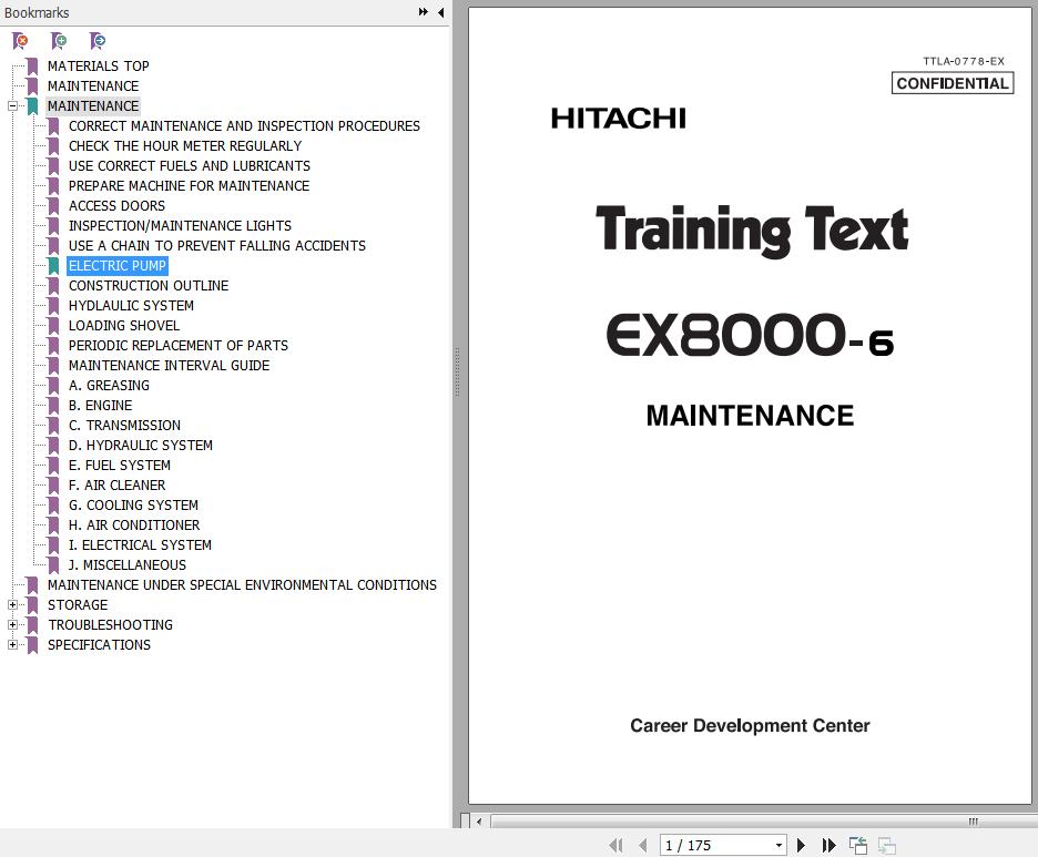 The Bookmarks of Hitachi EX8000-6 Hydraulic Excavator Training Text Maintenance: