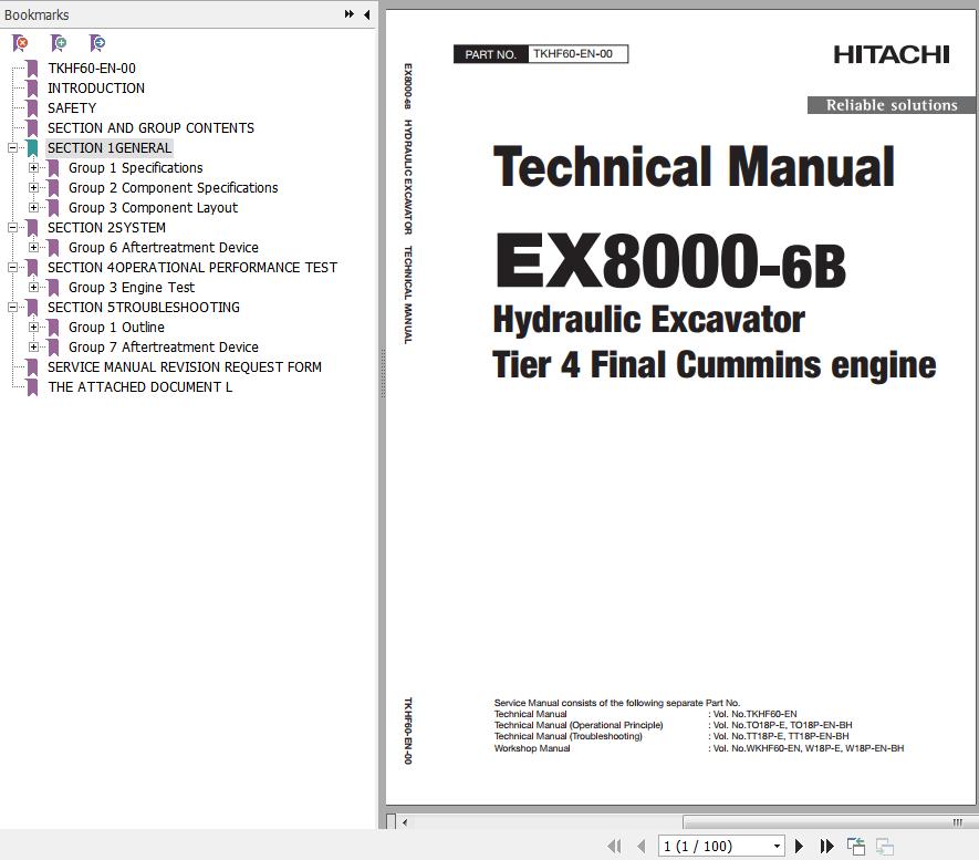 The Bookmarks of Hitachi EX8000-6B Hydraulic Excavator T4F Cummins Technical Manual: