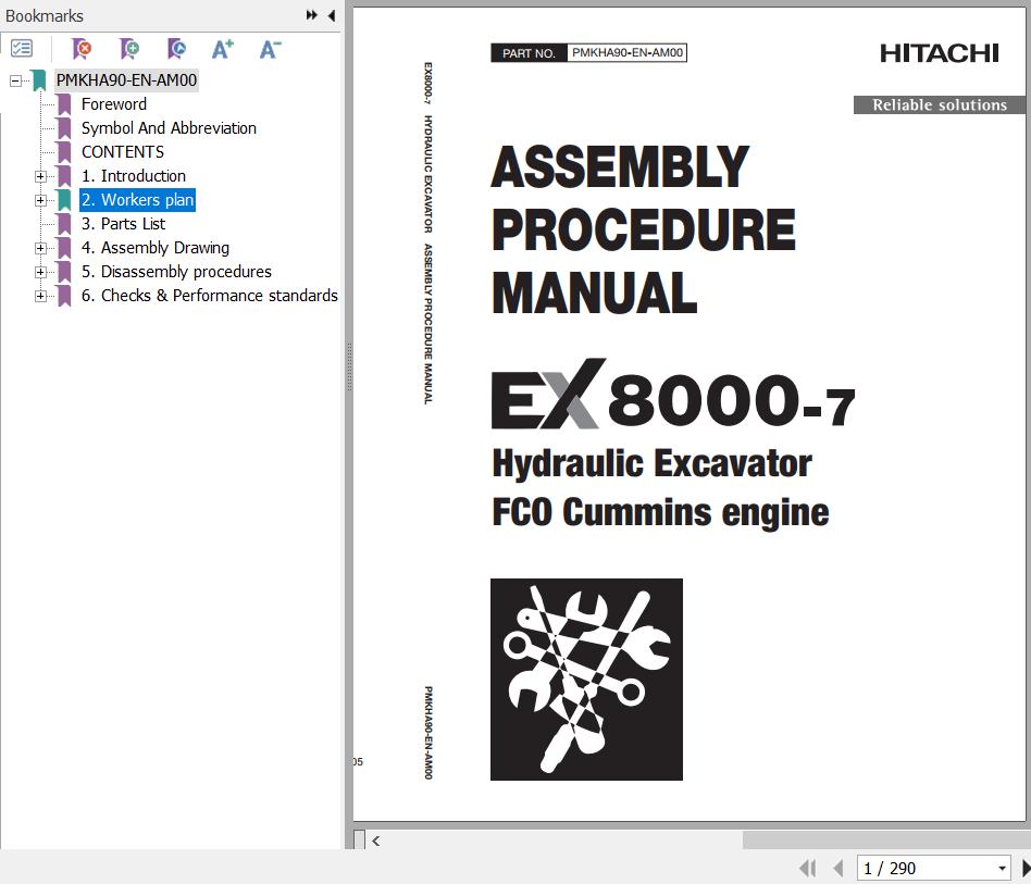 The Bookmarks of Hitachi EX8000-7 EX8000-7BH Cummins FCO Assembly Procedure Manual: