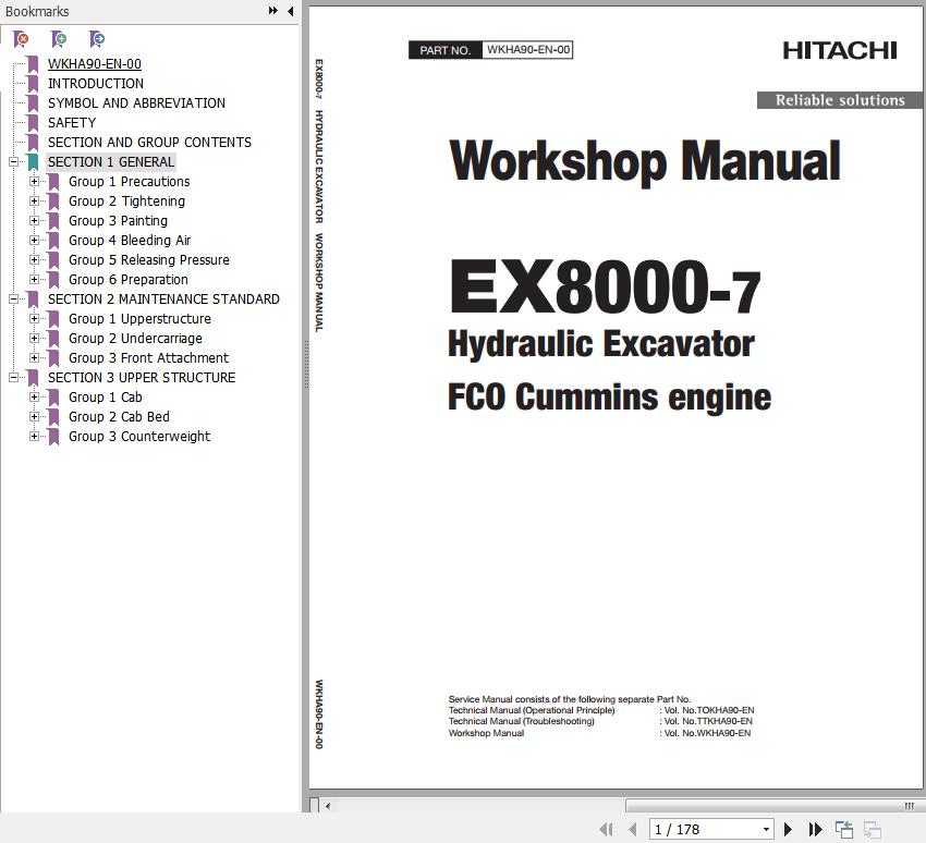 Hitachi EX8000-7 FCO Cummins Workshop Manual WKHA90-EN-00 Part1 178 Pages