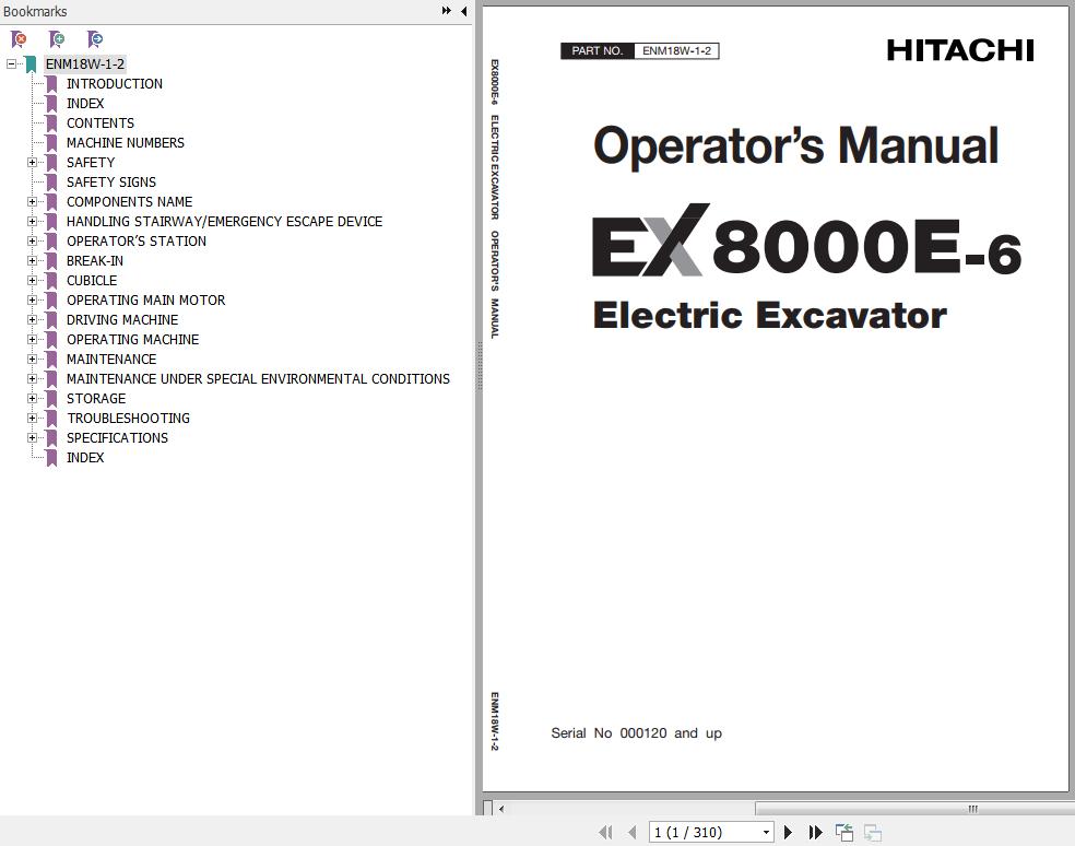 Hitachi EX8000E-6 Operator’s Manual ENM18W-1-2 310 Pages