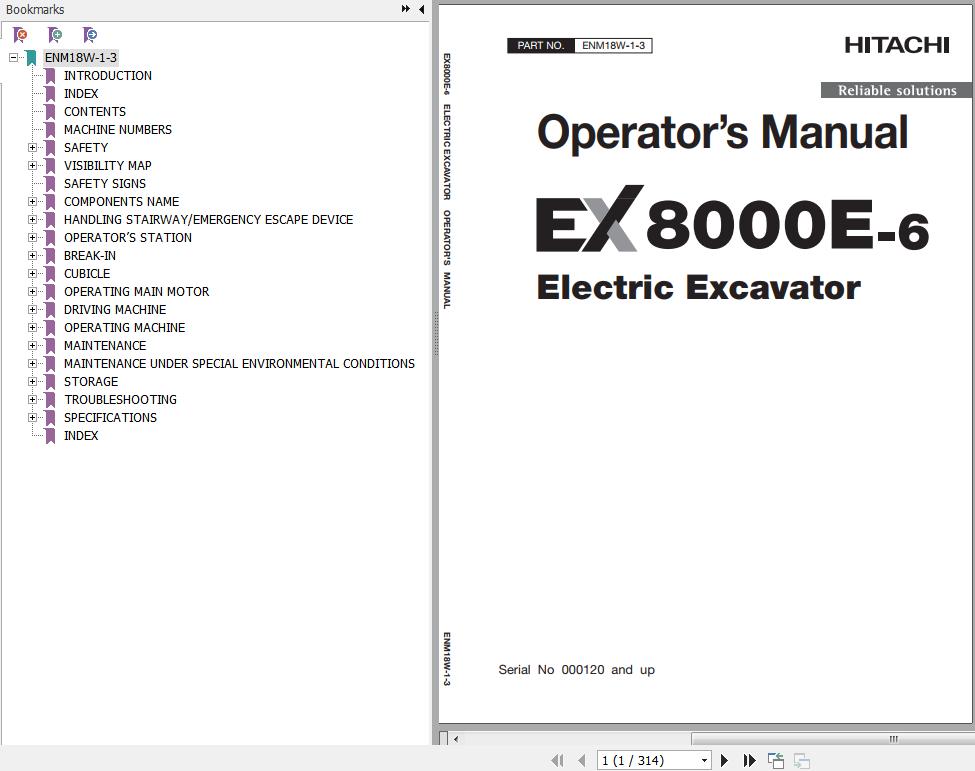 Hitachi EX8000E-6 Operator’s Manual ENM18W-1-3 314 Pages